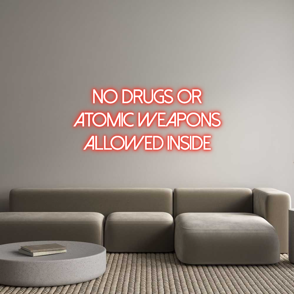 Text: NO DRUGS OR ATOMIC WEAPONS ALLOWED INSIDE