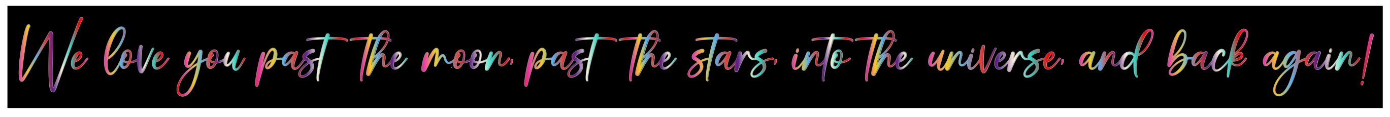 Text: We love you past the moon, past the stars, into the universe, and back again!