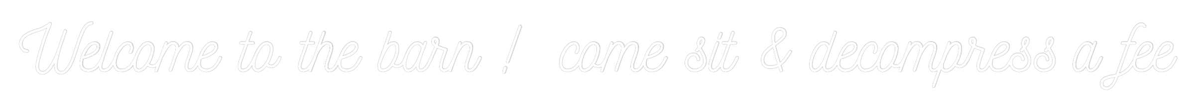 Text: Welcome to the barn ! come sit & decompress a fee