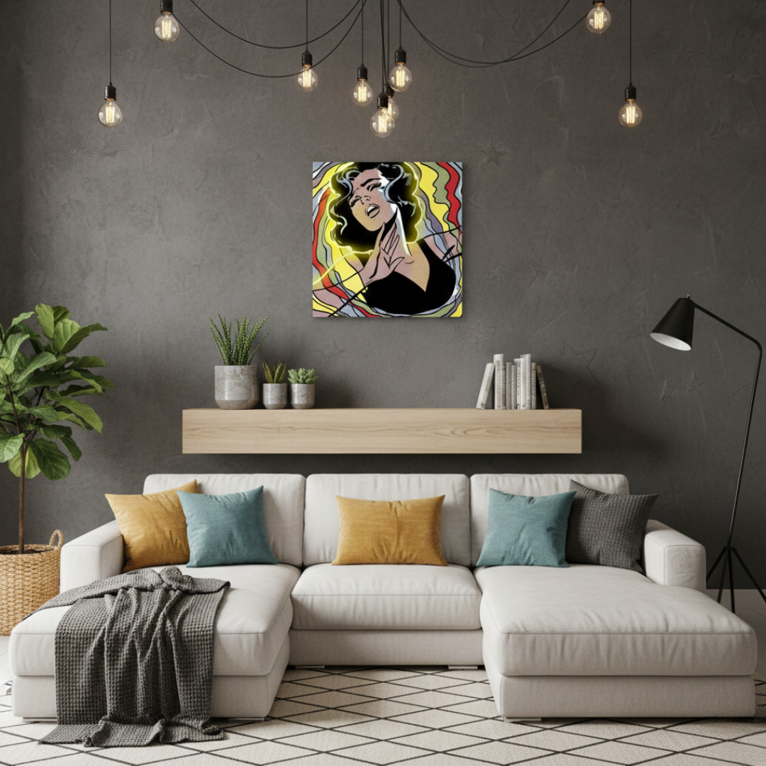Introducing the mesmerizing "Lady in Black" under UV Neon light by LEDNeons. It's a masterpiece of neon artwork.
