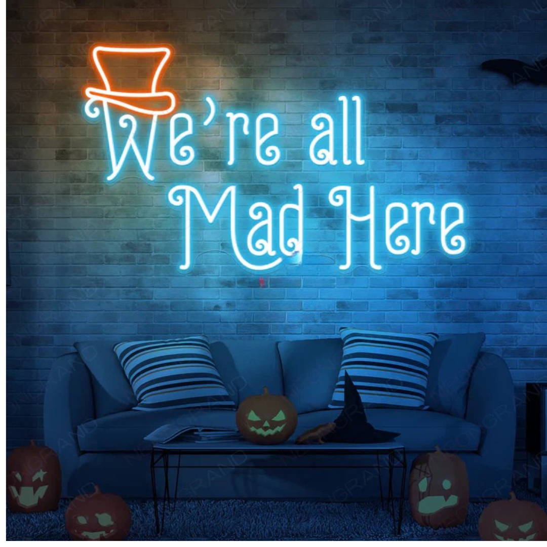 Bring magical vibe to your Halloween décor with the We're All Mad Here LED Neon Sign by LEDNeons. This Sign Inspired by classic spooky tales and eccentric characters.